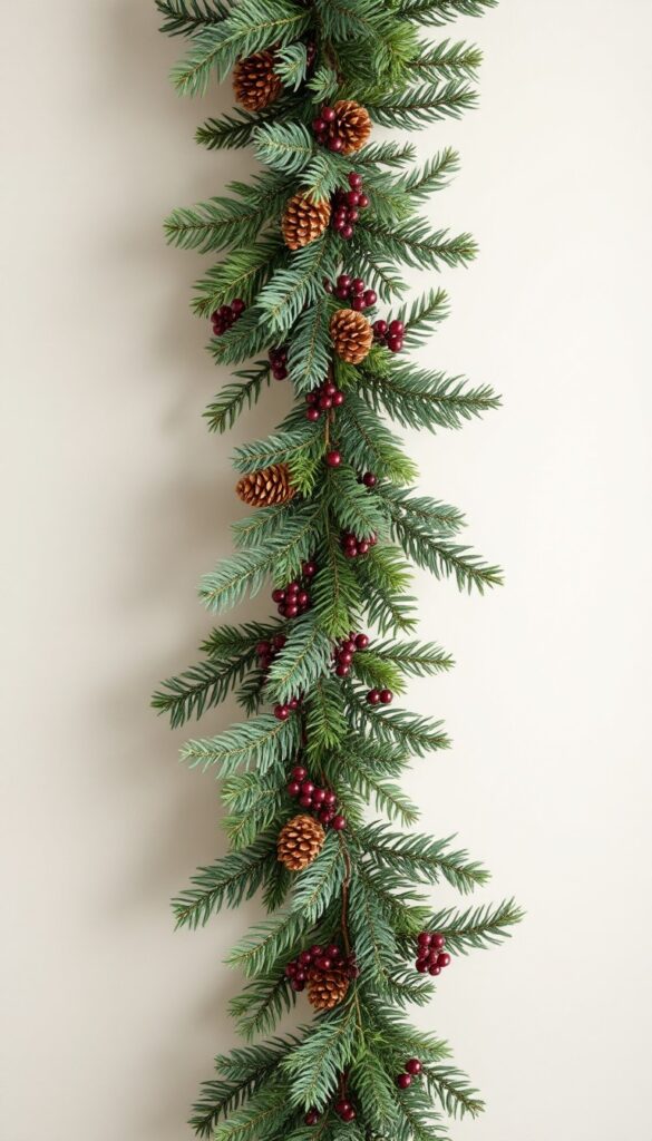 - A high-quality faux cedar or pine garland running the full table length
